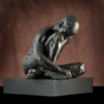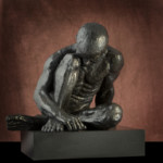 This is a darker contemplative piece. It is a battle between acceptance and frustration. The emphasis is on muscle structure. This sculpture has two patina options, one in black (The Russian Charon) and one gold (The Russian Chronos).